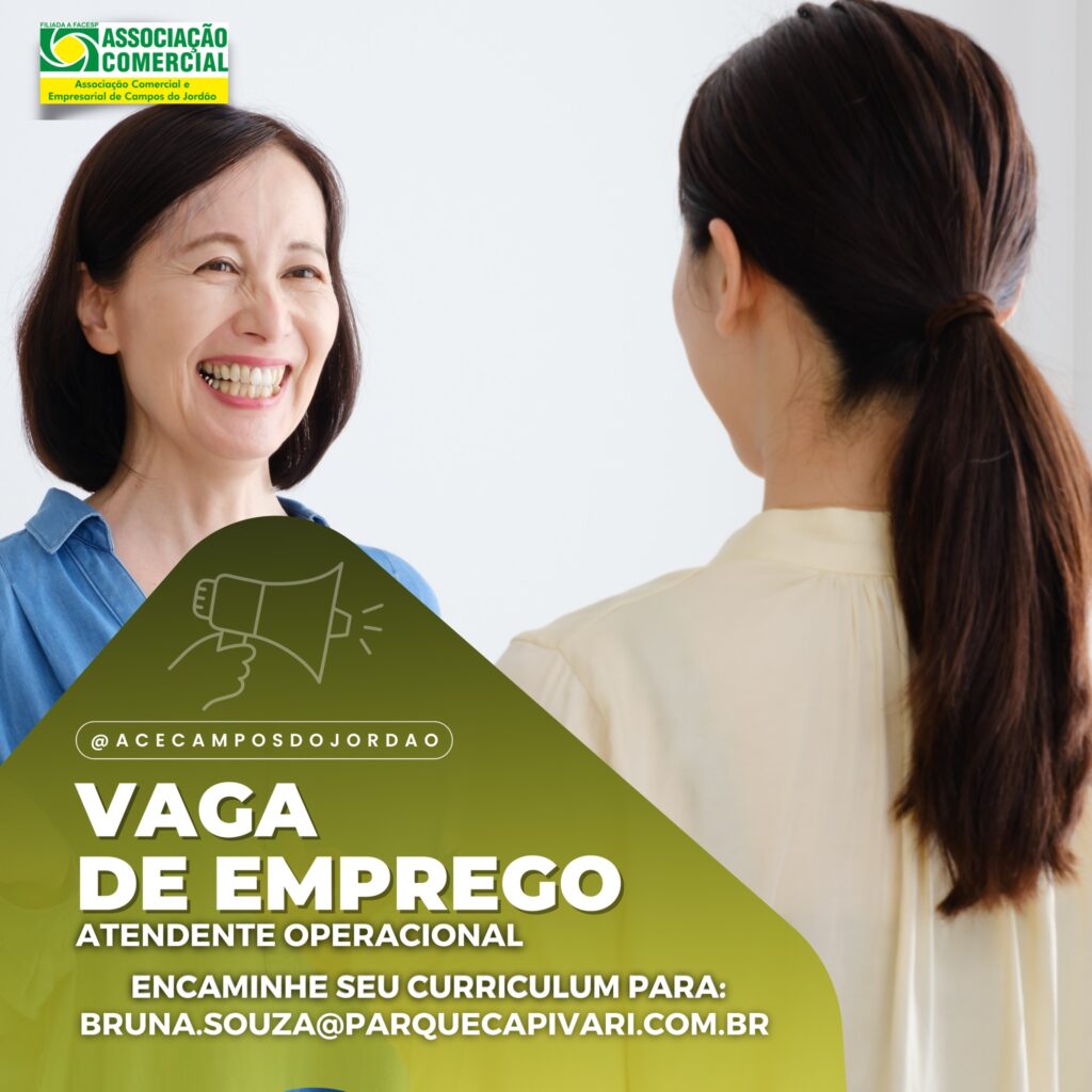 Empresa Associada contrata: ECO JORDÃO Vaga de : ATENDENTE OPERACIONAL Carga horária: ESCALA 5X2 Requisitos: Ensino Fundamental Completo Disponibilidade de Horários Embarque e Desembarque nos atrativos Atendimento ao Cliente Repasse das informações do Parque Capivari Limpeza e organização do setor. Você se enquadra nesta vaga? Então mande seu currículo atualizado para o email: bruna.souza@parquecapivari.com.br whatsapp: […]