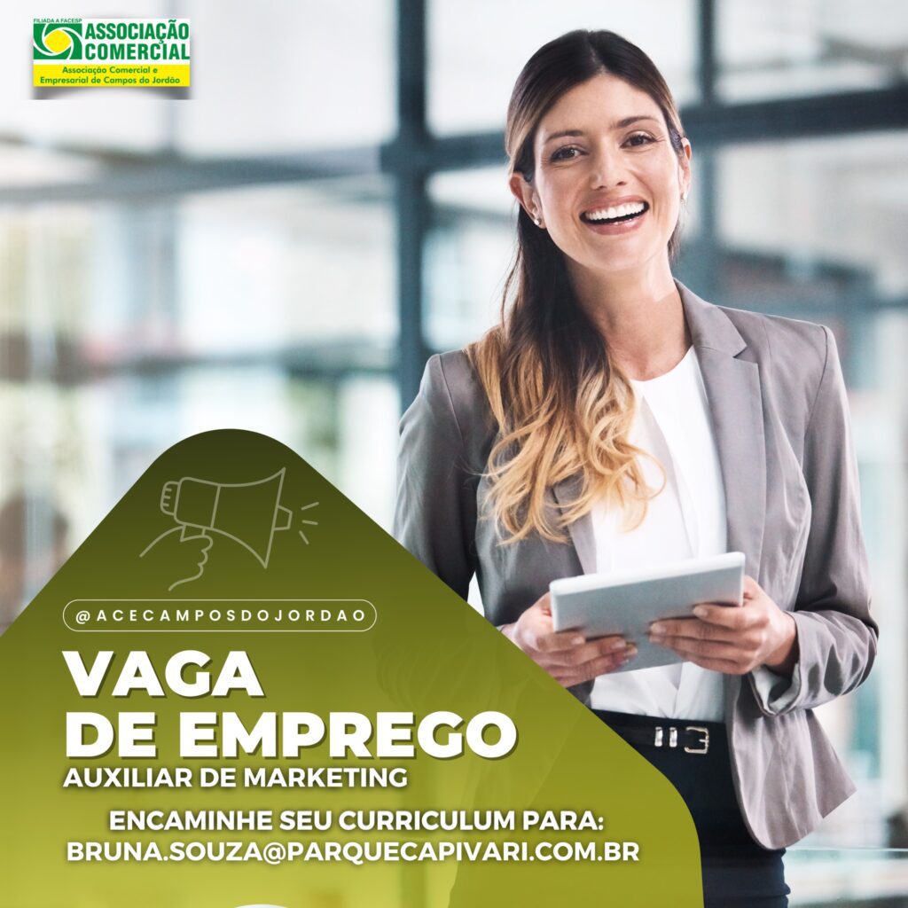 Empresa Associada contrata: ECO JORDÃO Vaga de : AUXILIAR DE MARKETING Carga horária: ESCALA 5X2 Requisitos: Ensino Médio Completo Disponibilidade de Horários Ser criativa na geração de ideias para campanhas de marketing Compreensão dos fundamentos de branding, publicidade e marketing digital Acompanhar os eventos do Parque. Você se enquadra nesta vaga? Então mande seu currículo […]
