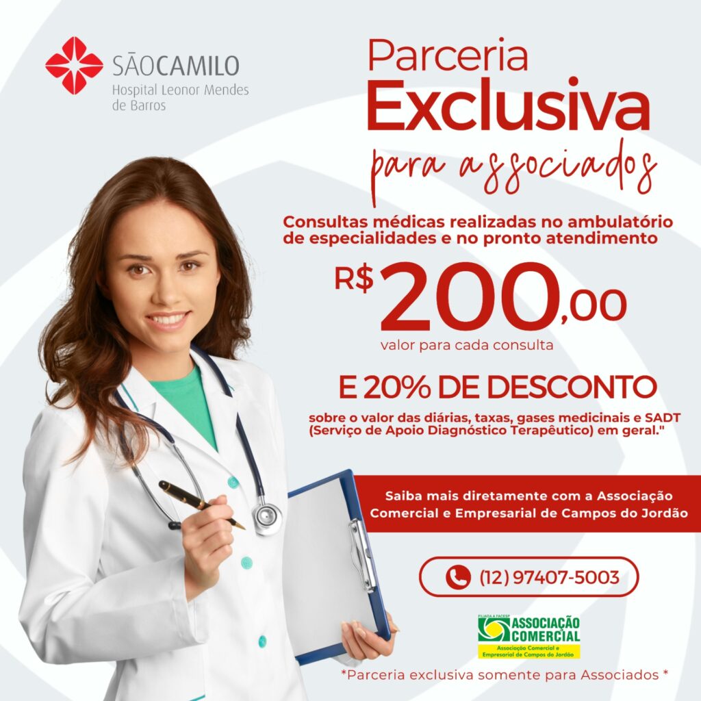 Parceria Exclusiva para Associados! O Hospital São Camilo Leonor Mendes de Barros em parceria com a Associação Comercial e Empresarial de Campos do Jordão oferece uma oportunidade imperdível: Consultas Médicas por apenas R$ 200,00! Realize suas consultas no ambulatório de especialidades e no pronto atendimento com um valor fixo acessível. E mais, 20% de DESCONTO! […]