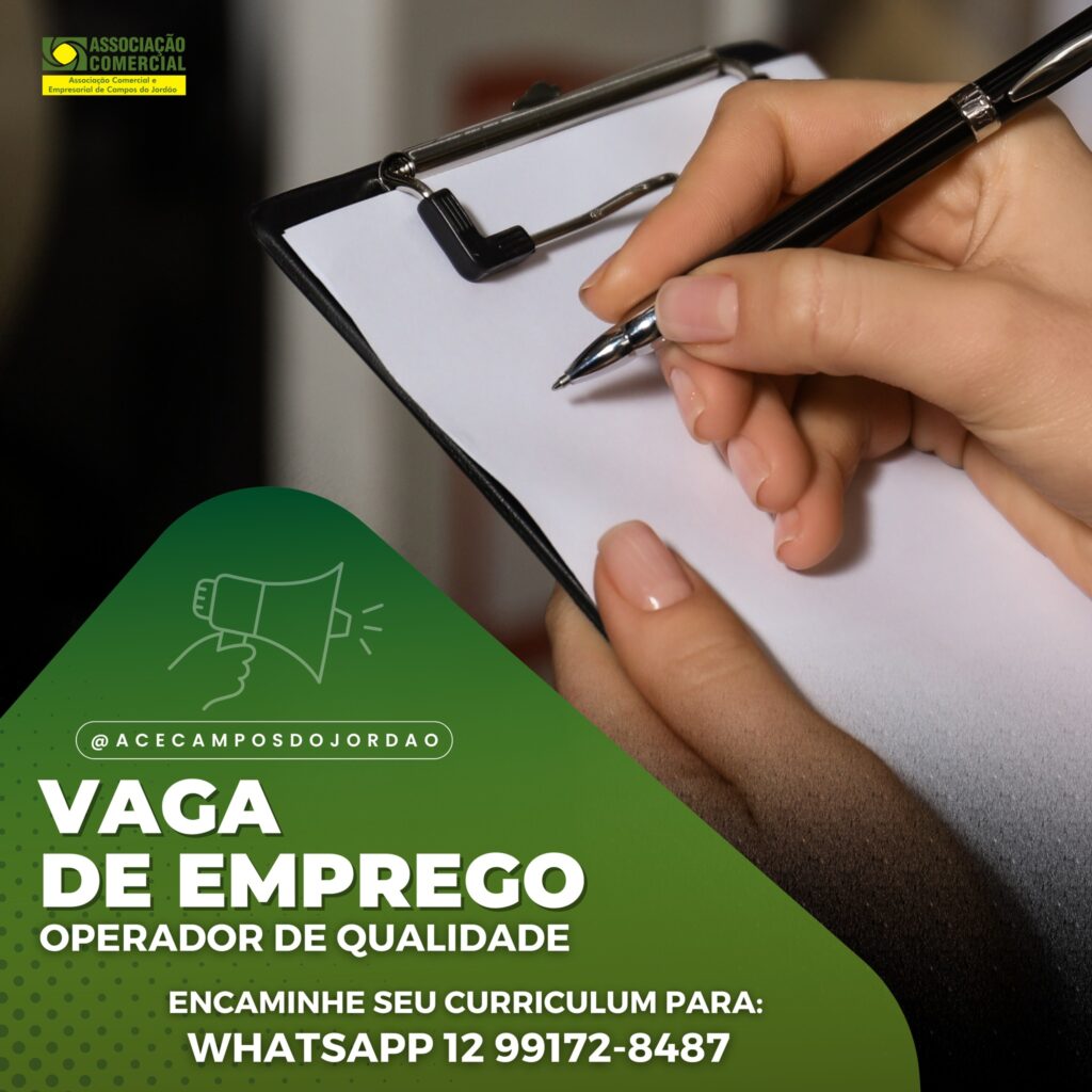 Empresa Associada contrata: Casa Alemã de Campos do Jordão Vaga de : OPERADOR DE QUALIDADE. Carga horária: 44 horas semanais. Requisitos: Se você tem um perfil proativo, dinâmico, está em busca de uma colocação no mercado de trabalho, temos uma oportunidade pra você! Boa comunicação. Disponibilidade de horário. Ensino médio. Salário dentro da categoria, convênio […]
