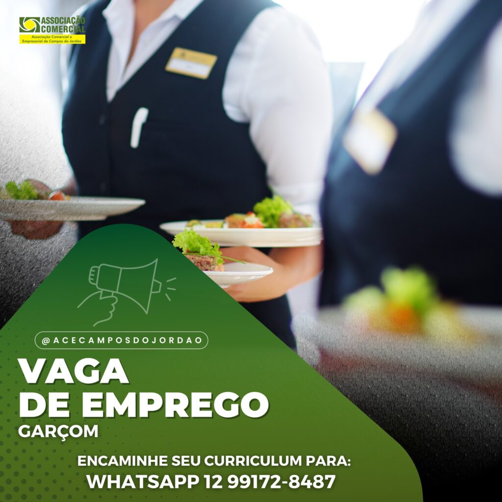 Empresa Associada contrata: Casa Alemã de Campos do Jordão Vaga de : GARÇOM. Carga horária: 44 horas semanais. Requisitos: Se você tem um perfil proativo, dinâmico, está em busca de uma colocação no mercado de trabalho, temos uma oportunidade pra você! Boa comunicação. Disponibilidade de horário. Ensino médio. Salário dentro da categoria, convênio médico e […]