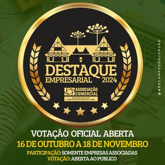A votação do Destaque Empresarial oficial da Associação Comercial e Empresarial de Campos do Jordão esta no ar O período de votação será 16/10 a 18/11 Os vencedores serão anunciados até o dia 22/11 Veja como participar é muito fácil. VOTE CLICANDO AQUI https://ace-campos.mloutsourcing.dev/ Crie uma conta com nome/ e-mail/ celular e CPF. Verifique com […]