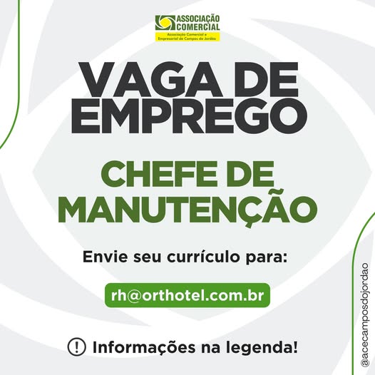 Empresa Associada contrata: ORT HOTELARIA E ORGANIZAÇAO DE EVENTOS LTDA Vaga de : Chefe de Manutenção Carga horária: a combinar Requisitos: Com Experiência mínima de 3 anos conhecimento em Elétrica conhecimento em hidráulica conhecimento em Marcenaria conhecimento Caldeira, calefação, piscina Você se enquadra nesta vaga? Então mande seu currículo atualizado para o e-mail: rh@orthotel.com.br