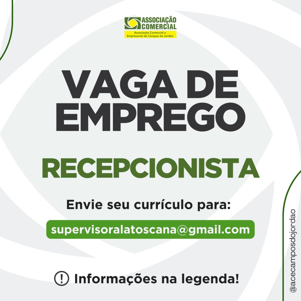 Empresa Associada contrata: Pousada La Toscana Vaga de : Recepcionista Carga horária: 15hs as 23:20hs Requisitos: Proativo Trabalhar em Equipe Excelência no atendimento Noção Básica na Área Habilitação Disponibilidade de horario Você se enquadra nesta vaga? Então mande seu currículo atualizado para o email: supervisoralatoscana@gmail.com Atenção: Os interessados na Vaga deve entrar em contato diretamente […]