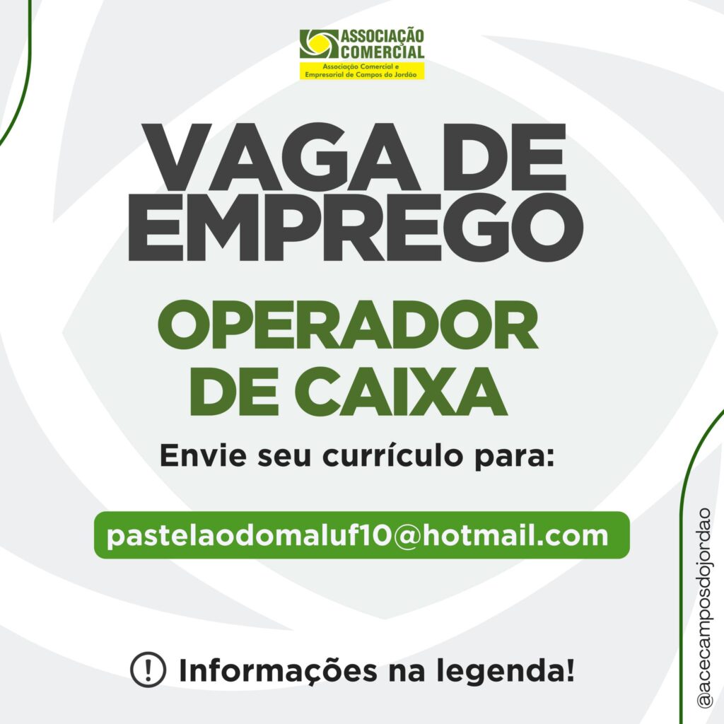 Empresa associada: Pastelão do Maluf ESTÁ CONTRATANDO Vaga de: Caixa Requisitos: Ensino Fundamental Carta de Recomendação Experiência Disponibilidade Benefícios: Assistência Médica Vale Alimentação Vale Refeição Seguro de Vida Vale transporte Você se enquadra nesta vaga? Então mande seu currículo atualizado para o whatsApp/ email : 12 99748- 8989 pastelaodomaluf10@hotmail.com Atenção: Os interessados na Vaga […]