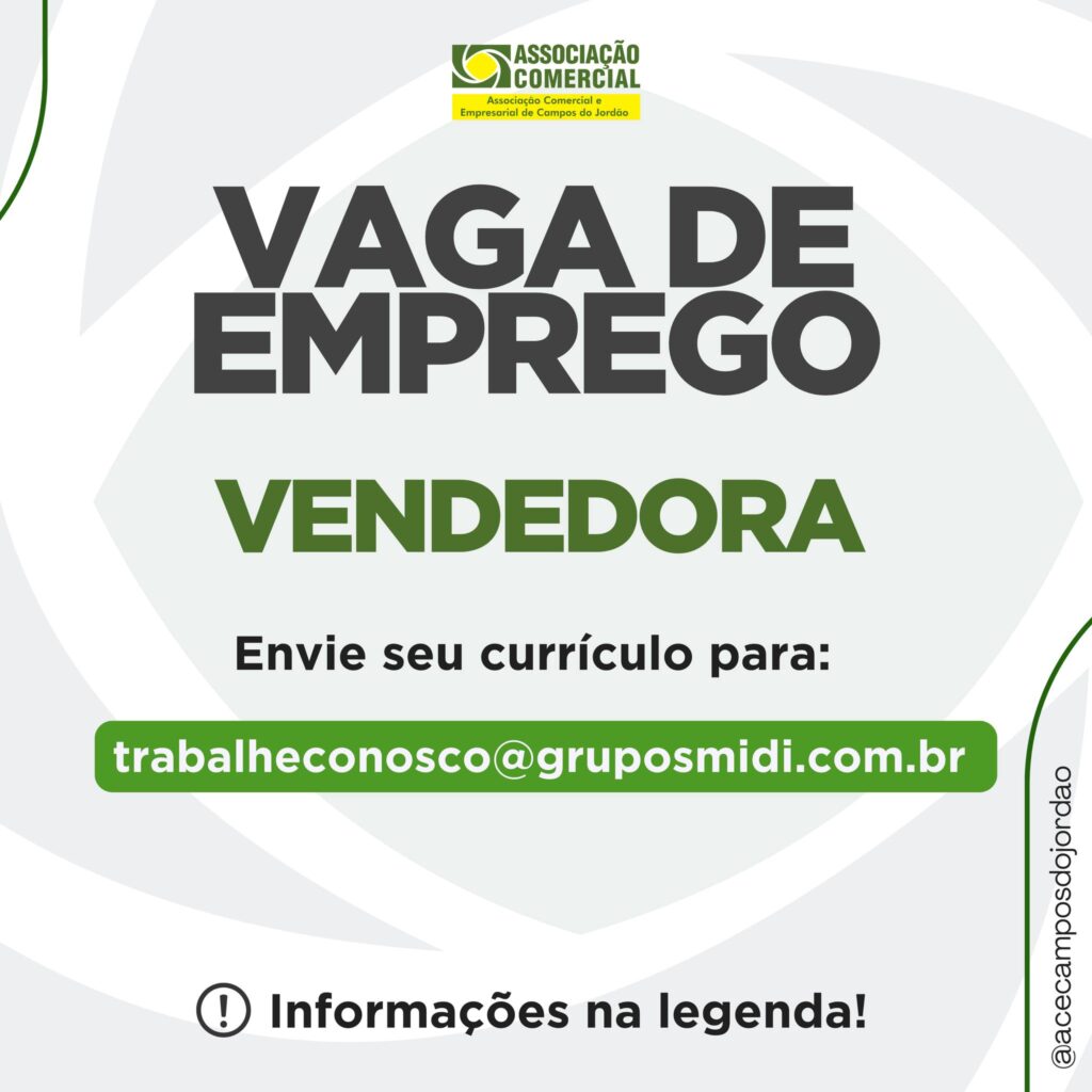Empresa associada: LUPO ESTÁ CONTRATANDO Vaga de: VENDEDORA Requisitos: Experiência em vendas Comprometimento Pontualidade Facilidade de comunicação Idade mínima 18 anos Você se enquadra nesta vaga? Então mande seu currículo atualizado para o E-mail: trabalheconosco@gruposmidi.com.br Atenção: Os interessados na Vaga deve entrar em contato diretamente com a empresa contratante, a ACE é responsável apenas pela […]