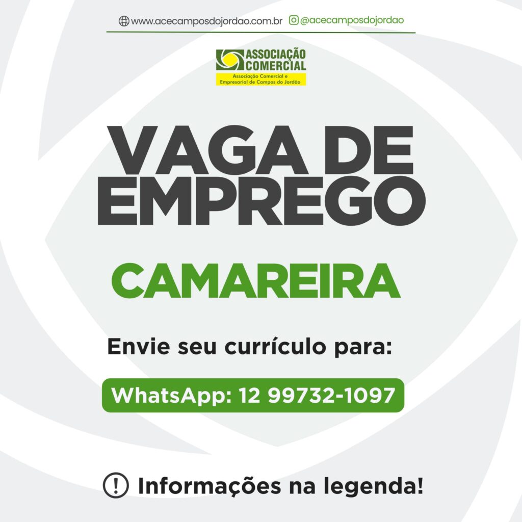 Empresa associada: Pousada Primavera ESTÁ CONTRATANDO Vaga de: Camareira Requisitos: ser maior de 18 anos proativa responsável saber trabalhar em equipe Você se enquadra nesta vaga? Então mande seu currículo atualizado para o WhastApp: 12 99732-1097 Atenção: Os interessados na Vaga deve entrar em contato diretamente com a empresa contratante, a ACE é responsável […]