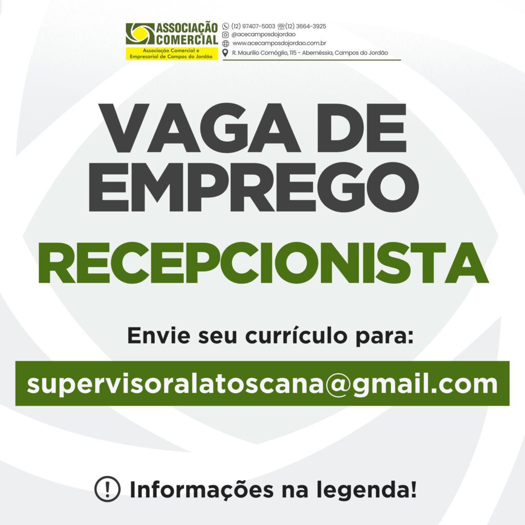 Empresa associada contrata: Pousada La Toscana ESTÁ CONTRATANDO Vaga de: Recepcionista Horario: 15hs as 23hs Requisitos: Proativo Trabalhar em equipe Exelencia no atendimento Noçao basica na Area ou interesse em aprender Disponibilidade de horario Habilitaçao Você se enquadra nesta vaga? Então mande seu currículo atualizado para o E-mail:supervisoralatoscana@gmail.com Atenção: Os interessados na Vaga deve entrar […]