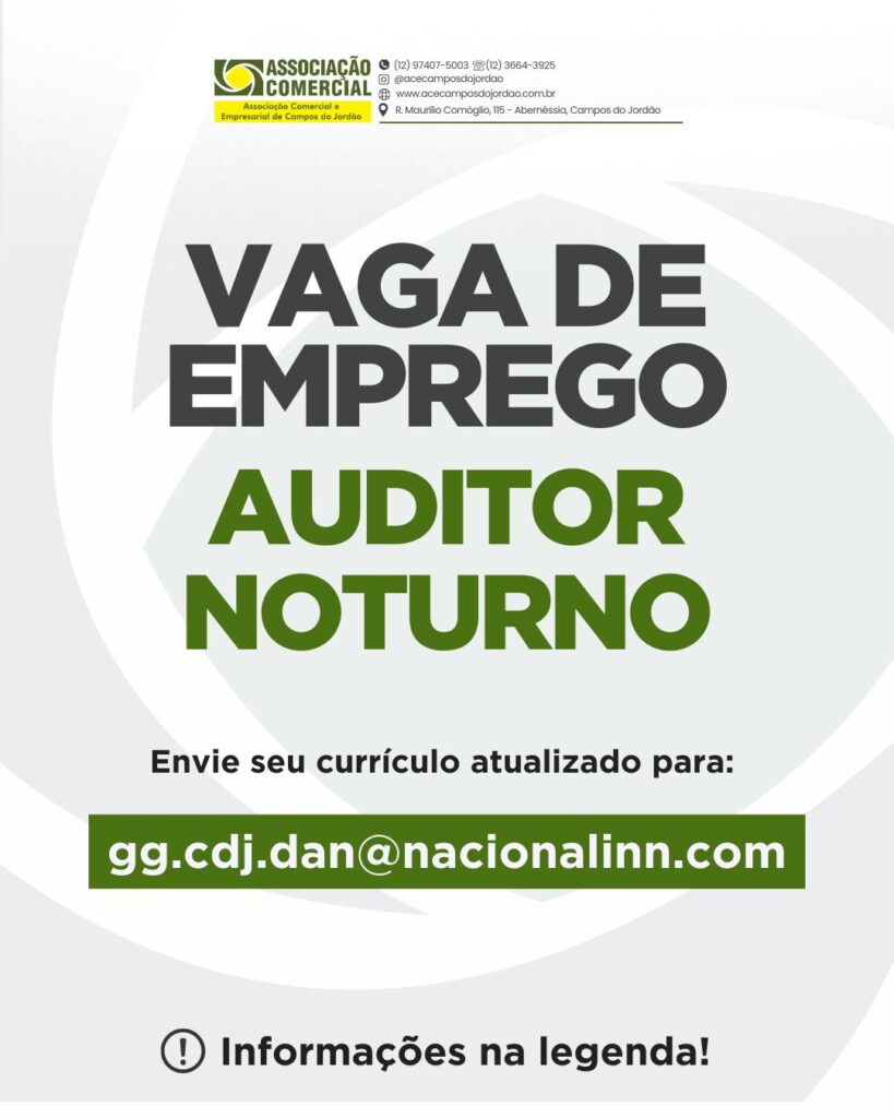 Empresa associada: Hotel Dan Inn Premium ESTÁ CONTRATANDO Vaga de: Auditor Noturno Requisitos: Ser responsável Ter facilidade e preferência por trabalhar na madrugada Se tiver conhecimento com auditoria será um diferencial Você se enquadra nesta vaga? Então mande seu currículo atualizado para o E-mail: gg.cdj.dan@nacionalinn.com Atenção: Os interessados na Vaga deve entrar em contato diretamente […]