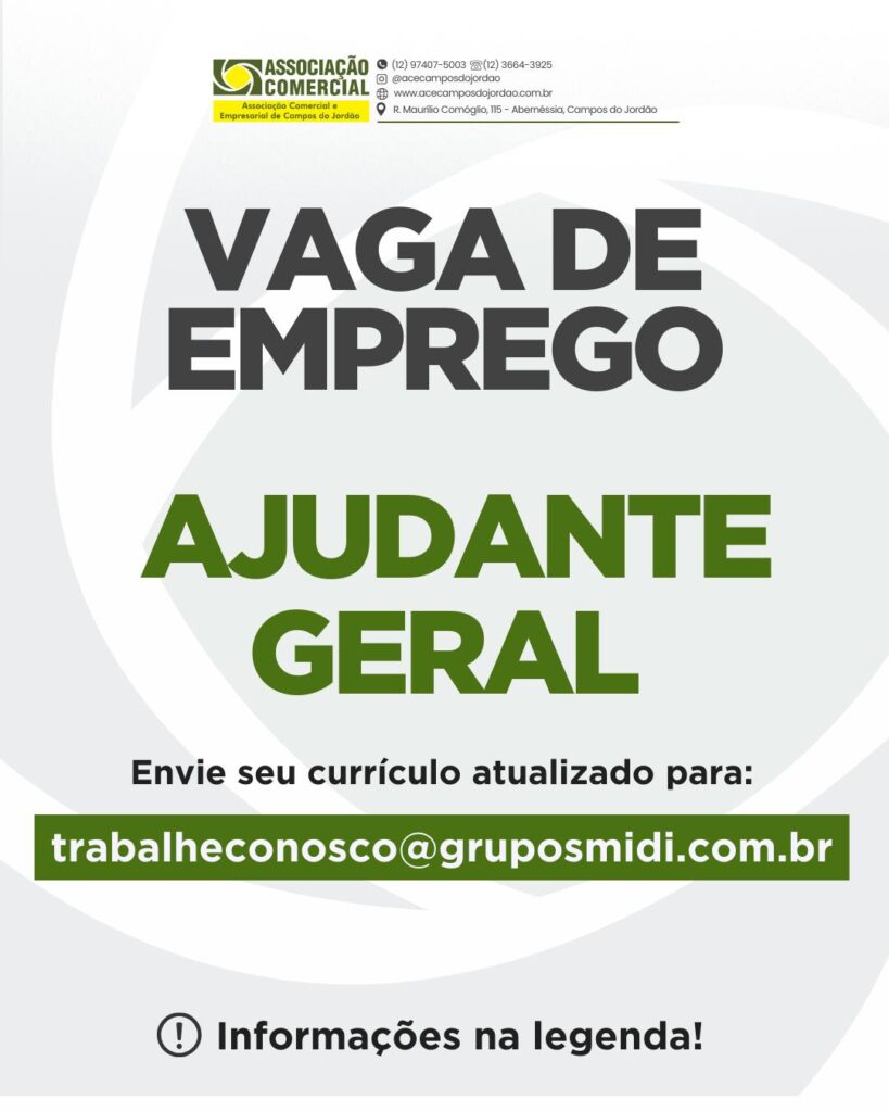 Empresa associada: SMIDI MOVEIS ESTÁ CONTRATANDO Vaga de: AJUDANTE GERAL Requisitos: EXPERIÊNCIA EM VENDAS COMPROMETIMENTO PONTUALIDADE COMUNICAÇÃO MÍNIMO 18 ANOS Você se enquadra nesta vaga? Então mande seu currículo atualizado para o E-mail: trabalheconosco@gruposmidi.com.br Atenção: Os interessados na Vaga deve entrar em contato diretamente com a empresa contratante, a ACE é responsável apenas pela divulgação […]