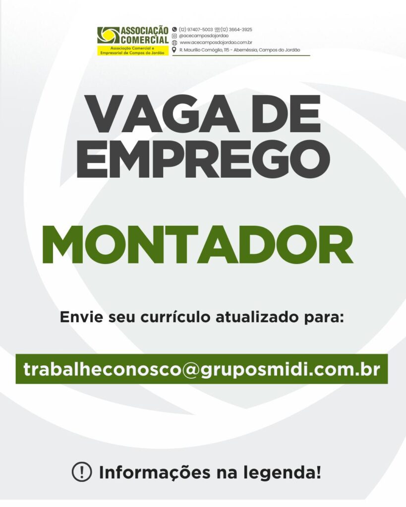 Empresa associada: SMIDI MOVEIS ESTÁ CONTRATANDO Vaga de: MONTADOR Requisitos: EXPERIÊNCIA EM VENDAS COMPROMETIMENTO PONTUALIDADE COMUNICAÇÃO MÍNIMO 18 ANOS Você se enquadra nesta vaga? Então mande seu currículo atualizado para o E-mail: trabalheconosco@gruposmidi.com.br Atenção: Os interessados na Vaga deve entrar em contato diretamente com a empresa contratante, a ACE é responsável apenas pela divulgação das […]
