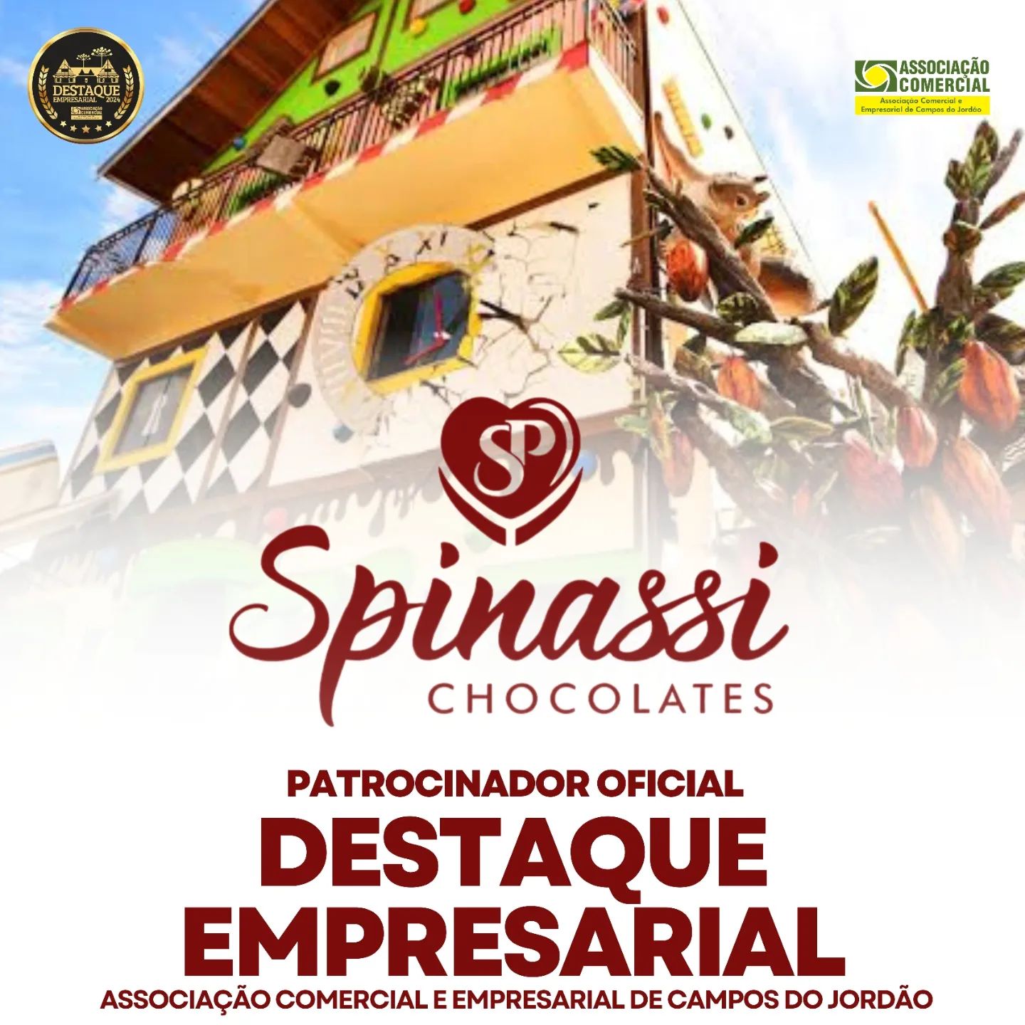 A Associação Comercial e Empresarial de Campos do Jordão gostaria de expressar seu sincero agradecimento à @chocolatespinassi@priscilaerogeriospinassi pelo patrocínio ao Destaque Empresarial 2024. Sua parceria é fundamental para o sucesso deste evento e para o fortalecimento do nosso comércio local. Agradecemos também pelo constante apoio e incentivo aos nossos trabalhos, que ajudam a promover o desenvolvimento da nossa comunidade. Juntos, continuaremos a fazer a diferença! ![]()