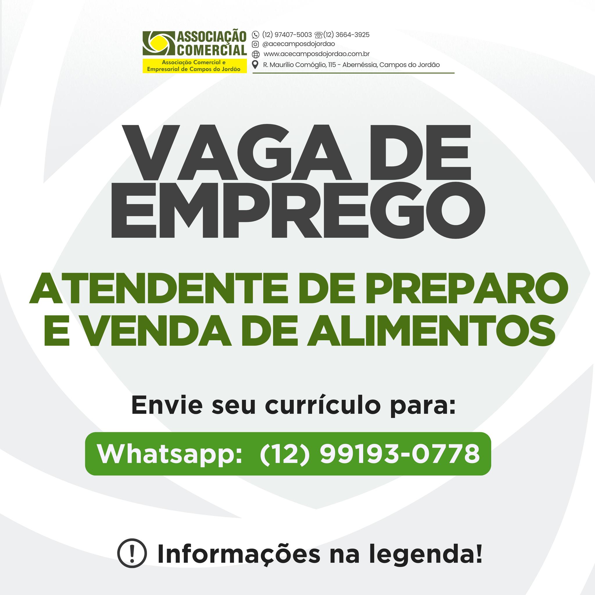 🍁 Vaga de: ATENDENTE DE PREPARO E VENDA DE ALIMENTOS