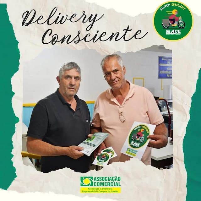 Após as instruções de conscientização a este associado que prontamente aceitou fazer parte desta campanha, o mesmo recebeu da ACE um Selo de Estabelecimento parceiro do Delivery consciente e também placas de identificação para os Bags de seus Motoboys, assim os clientes que tem preferência por estabelecimentos que são conscientes e que Irão conscientizar seus funcionários em relação as suas entregas sem barulhos em excesso, respeitando a todos cidadãos jordanenses, os animais e em respeito a lei 46/2021.