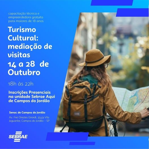 Não perca oportunidade de se capacitar e empreender na área de turismo! curso presencial / vagas limitadas CAPACITAÇÃO TÉCNICA TURISMO CULTURAL: MEDIAÇÃO DE VISITAS Essa é uma oportunidade para guias e agentes de turismo, aprimorarem seus conhecimentos. Nele você irá aprenda a realizar a mediação para visitantes em espaços socioculturais e artísticos, elaborando roteiros de […]