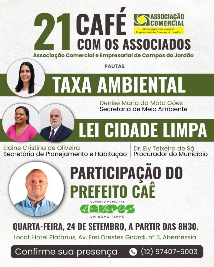 A Associação Comercial e Empresarial de Campos do Jordão tem o prazer de convidar todos os associados para o nosso 21º Café com os Associados! Será um momento único e imperdível para esclarecer as principais dúvidas sobre dois dos assuntos mais falados do momento! Taxa Ambiental – com Denise Maria da Mota Góes, Secretaria de […]