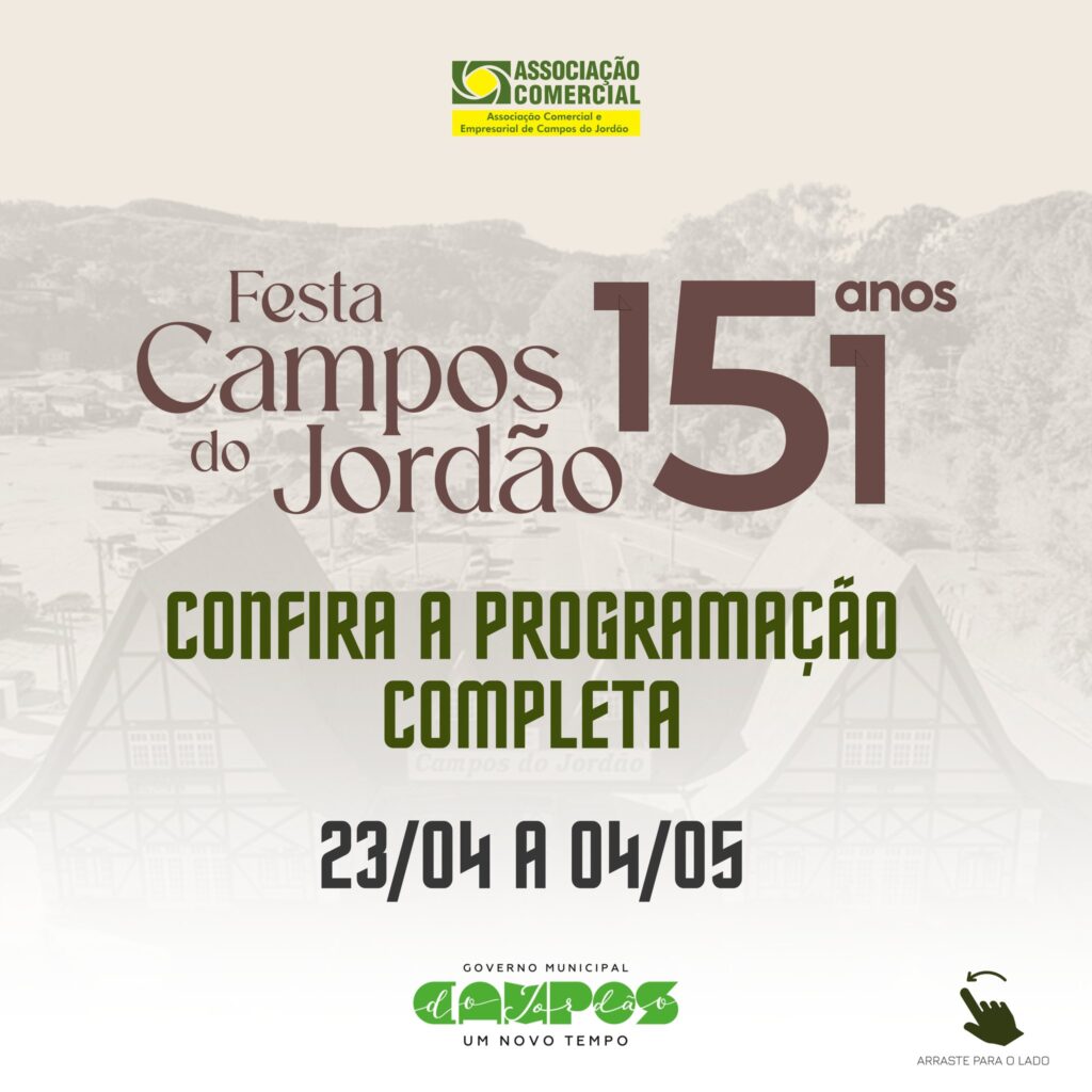 A cidade mais alta do Brasil se prepara para viver dias de festa, cultura e tradição! A partir do dia 23 de abril, Campos do Jordão inicia as celebrações dos seus 151 anos de história com uma programação especial promovida pela Prefeitura Municipal, por meio das Secretarias de Turismo, Cultura, Educação e Esportes. Moradores e […]