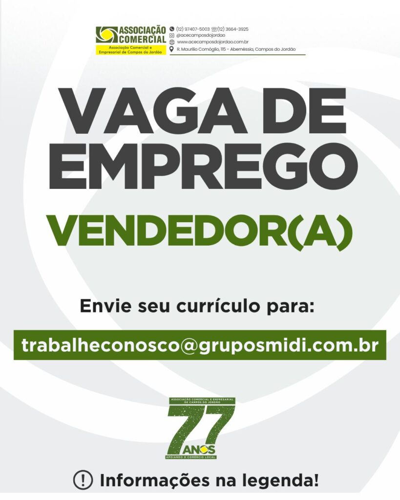 Empresa associada: LUPO ESTÁ CONTRATANDO Vaga de: VENDEDOR(A) Requisitos: EXPERIÊNCIA EM VENDAS COMPROMETIMENTO PONTUALIDADE COMUNICAÇÃO MÍNIMO 17 ANOS Você se enquadra nesta vaga? Então mande seu currículo atualizado para o E-mail: trabalheconosco@gruposmidi.com.br Atenção: Os interessados na Vaga deve entrar em contato diretamente com a empresa contratante, a ACE é responsável apenas pela divulgação das vagas […]