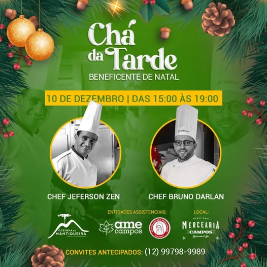 Que tal confraternizar e trocar presentes com amigos num ambiente aconchegante e lindamente decorado, música animada, sorteio de mimos especiais e claro, regado a um Chá da Tarde cheio de delícias para adoçar a vida e ajudar Entidades Assistenciais: AME Campos, Casa Rainha da Paz e duas unidades de Casa que atende crianças e adolescentes.