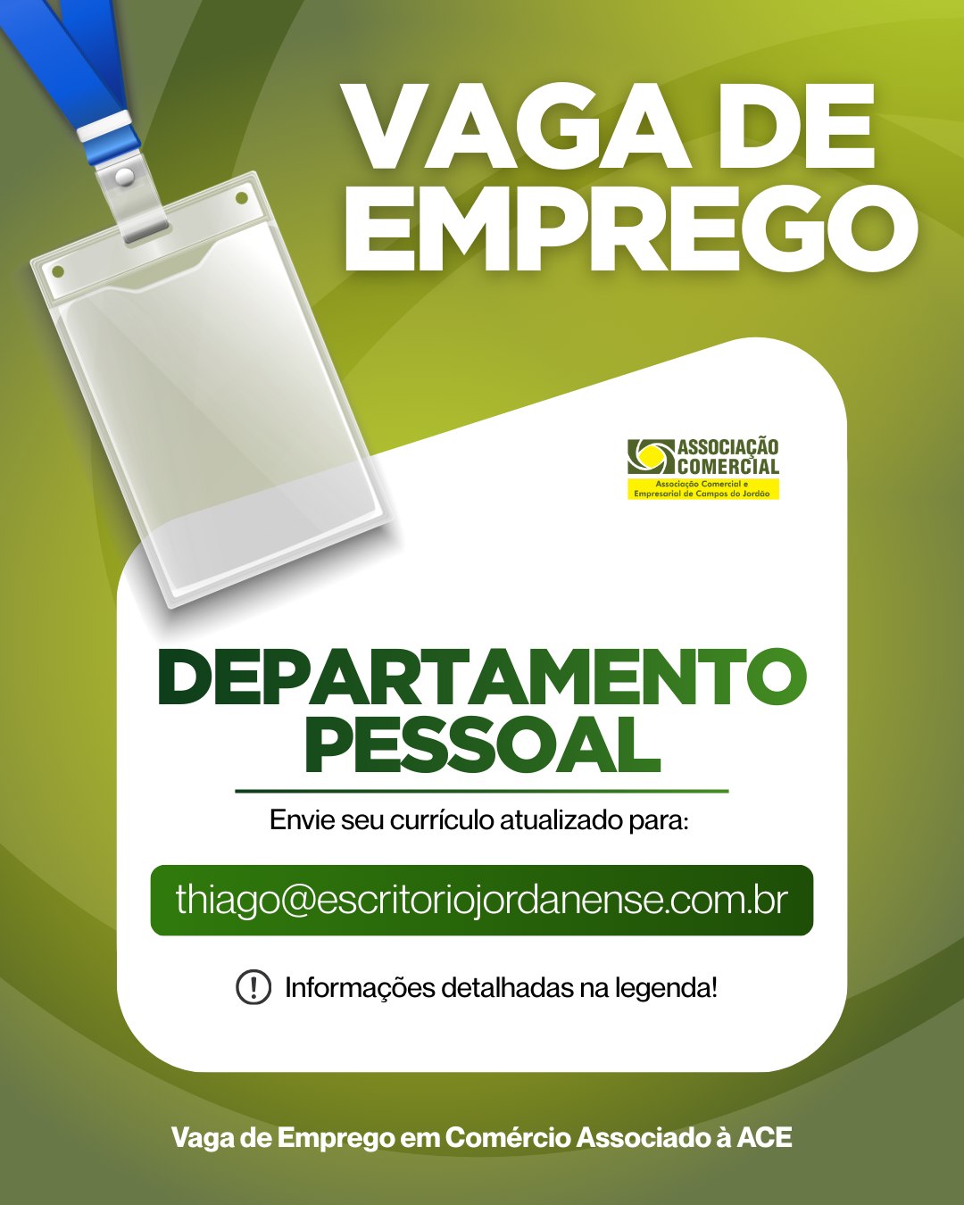 Então mande seu currículo atualizado para o E-mail: thiago@escritoriojordanense.com.br
