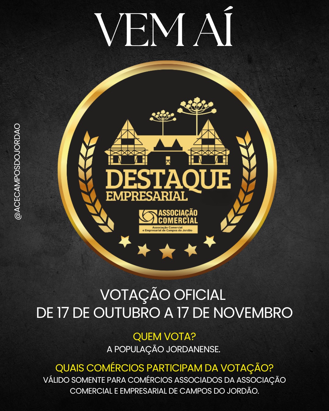 A votação será válida apenas para comércios associados à Associação Comercial e Empresarial de Campos do Jordão.