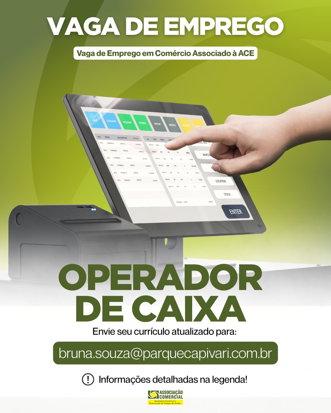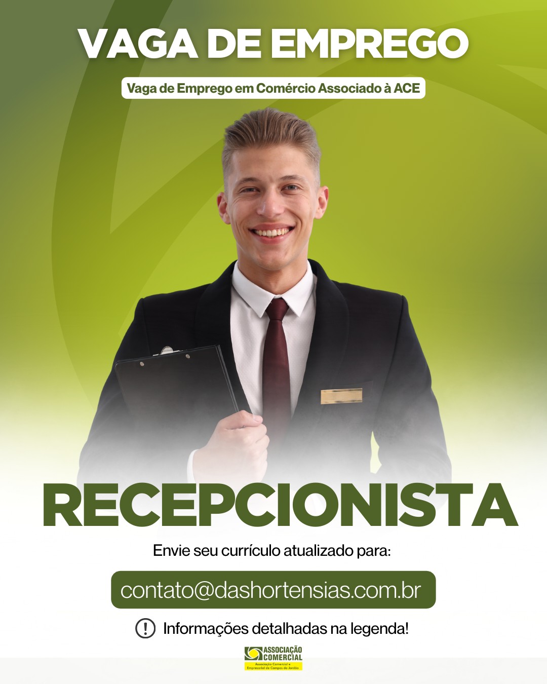 Os interessados na Vaga deve entrar em contato diretamente com a empresa contratante, a ACE é responsável apenas pela divulgação das vagas das empresas associadas.