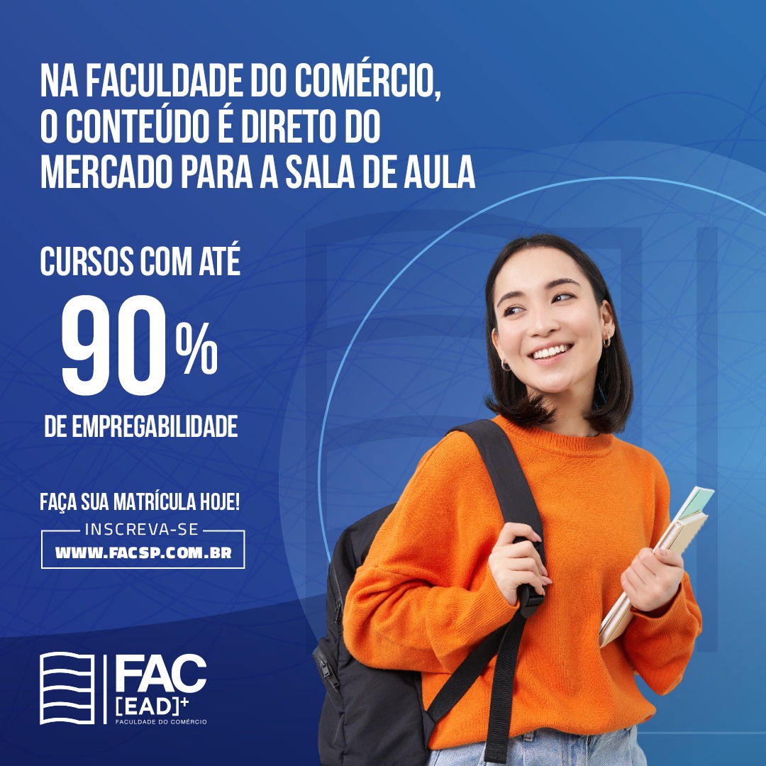 Faça sua matrícula na FAC (Faculdade do Comércio) e dê um passo importante na sua carreira! Seja graduação ou pós-graduação, a FAC é a melhor opção para o seu futuro. Entre em contato agora mesmo com a Associação Comercial e Empresarial de Campos do Jordão pelo telefone 12 97407-5003 e garanta sua vaga!