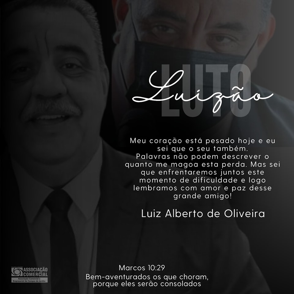 É com pesar que informamos o falecimento, do Vereador da Câmara Municipal de Campos do Jordão, Luizão.