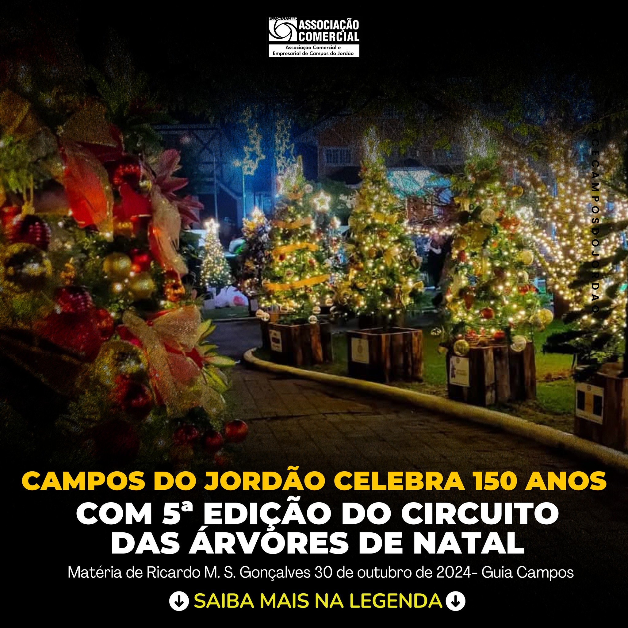 O Natal em Campos do Jordão promete ser ainda mais encantador este ano com a 5ª edição do Circuito das Árvores de Natal, que celebra os 150 anos do município. O evento, realizado pela Associação Comercial e Empresarial de Campos do Jordão em parceria com a Meta Iluminação, será inaugurado no dia 15 de novembro, às 20h, na Praça Pinho Bravo, localizada na Av. Emílio Ribas, 3916, em Vila Capivari.