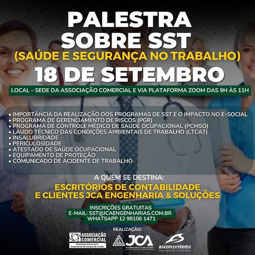 *Inscrições gratuitas* – e-mail: sst@jcaengenharias.com.br