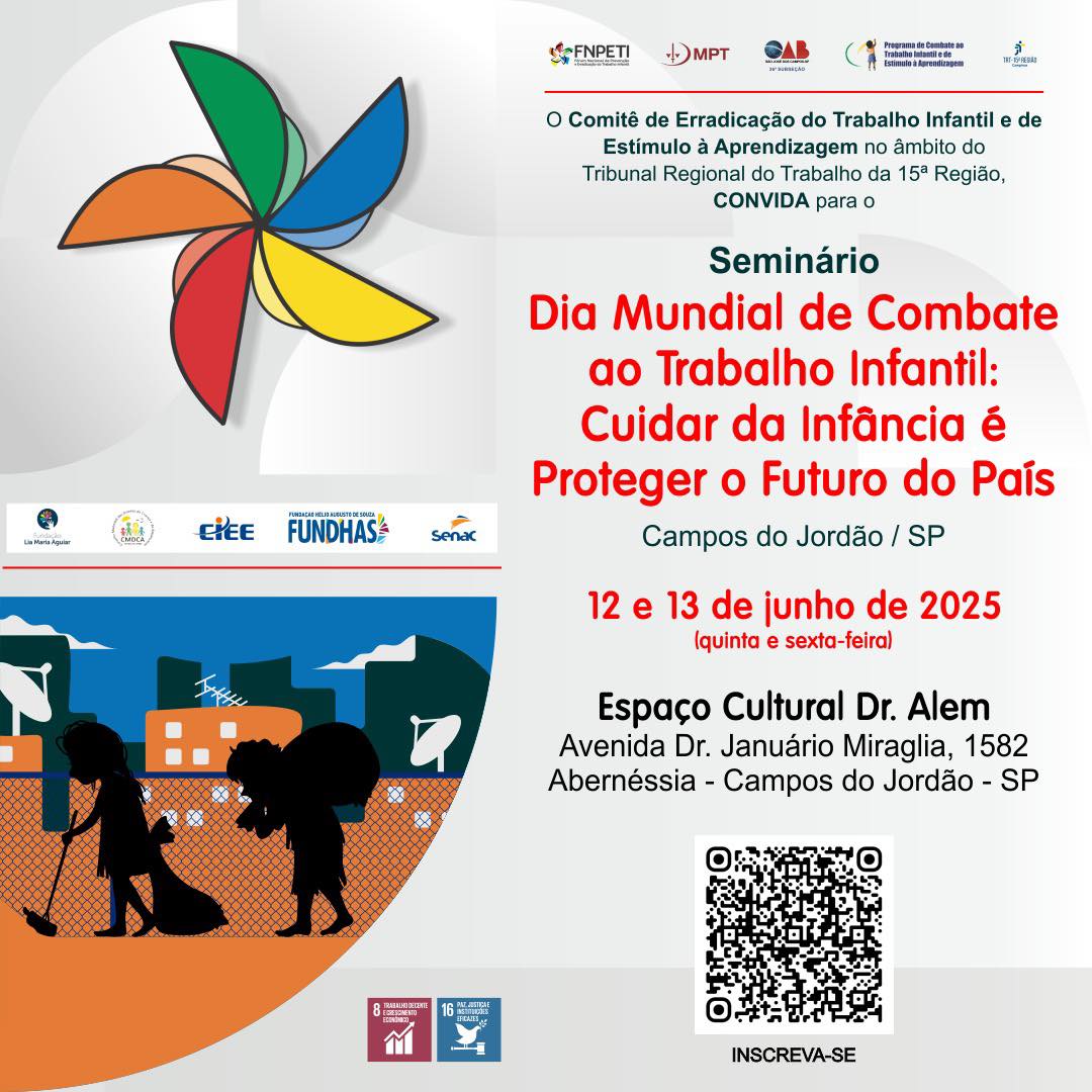Nos dias 12 e 13 de junho, Campos do Jordão será palco de um evento imperdível, resultado da parceria entre o Comitê de Erradicação do Trabalho Infantil e de Estímulo à Aprendizagem do Tribunal Regional do Trabalho da 15ª Região, a OAB – 36ª Subseção, o Ministério Público e diversas entidades formadoras de aprendizagem.